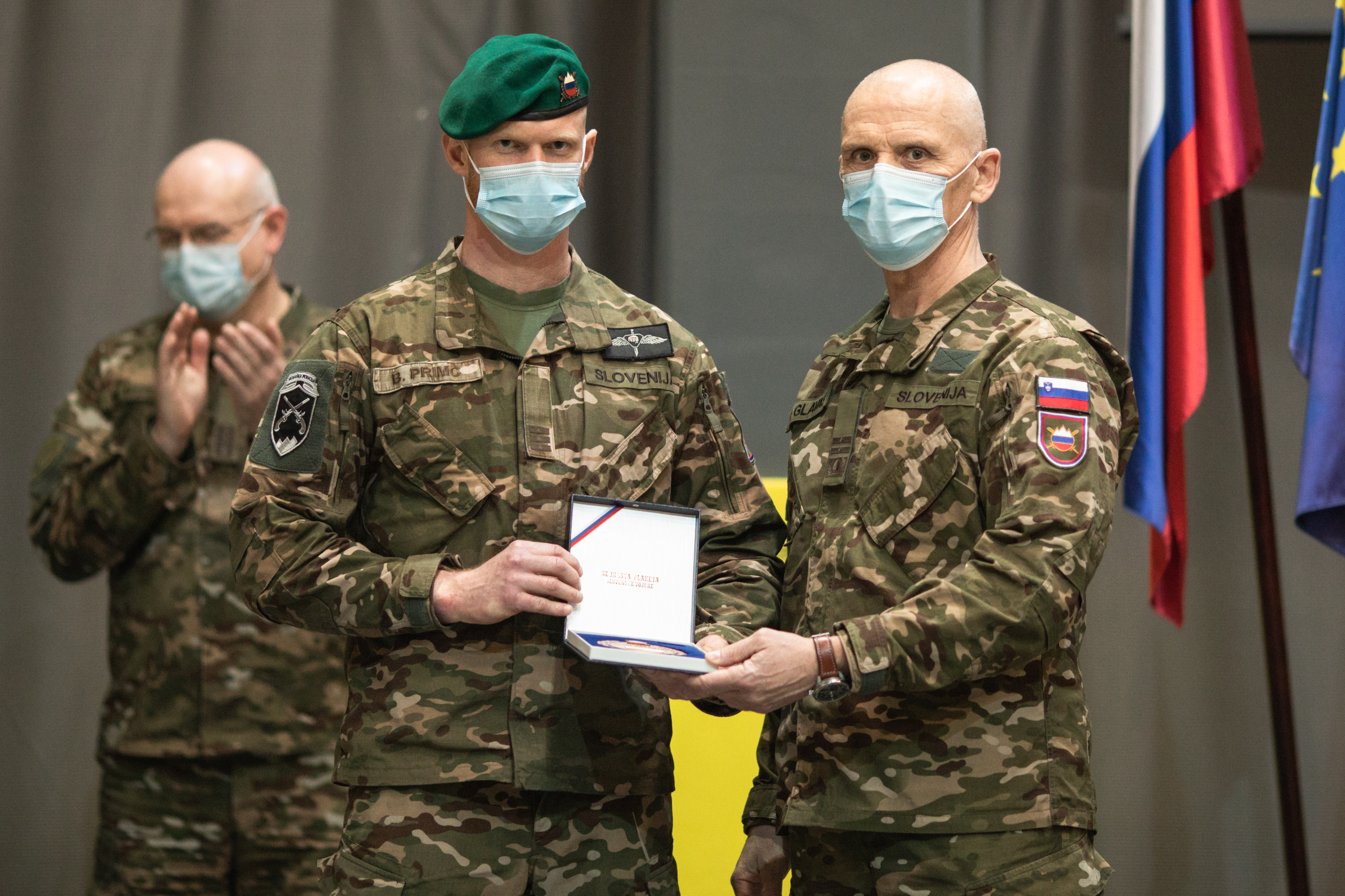Za njihovo predano in strokovno delo v času predsedovanja Republike Slovenije Svetu Evropske unije jim jo je izročil načelnik GŠSV generalmajor Robert Glavaš.