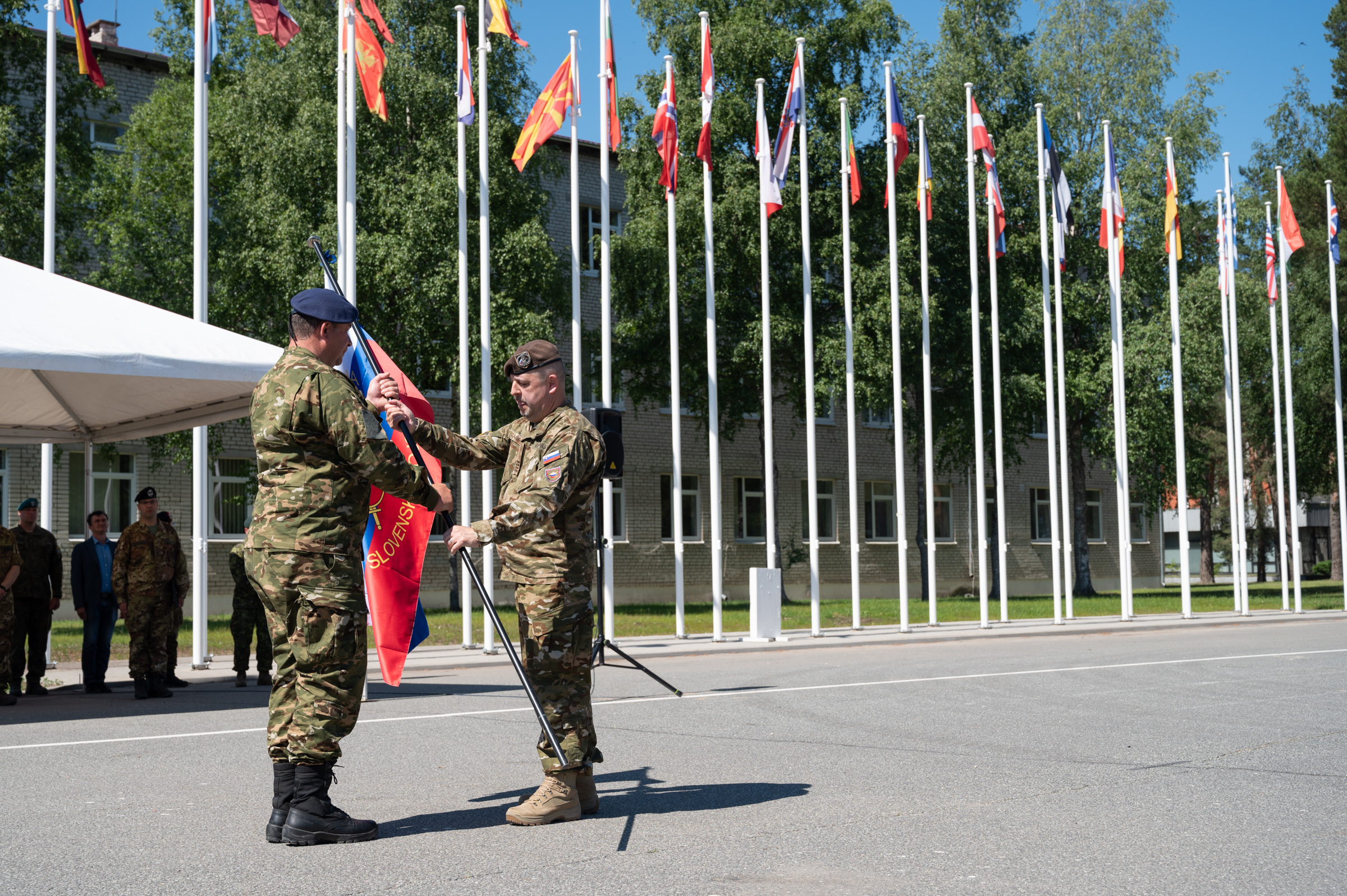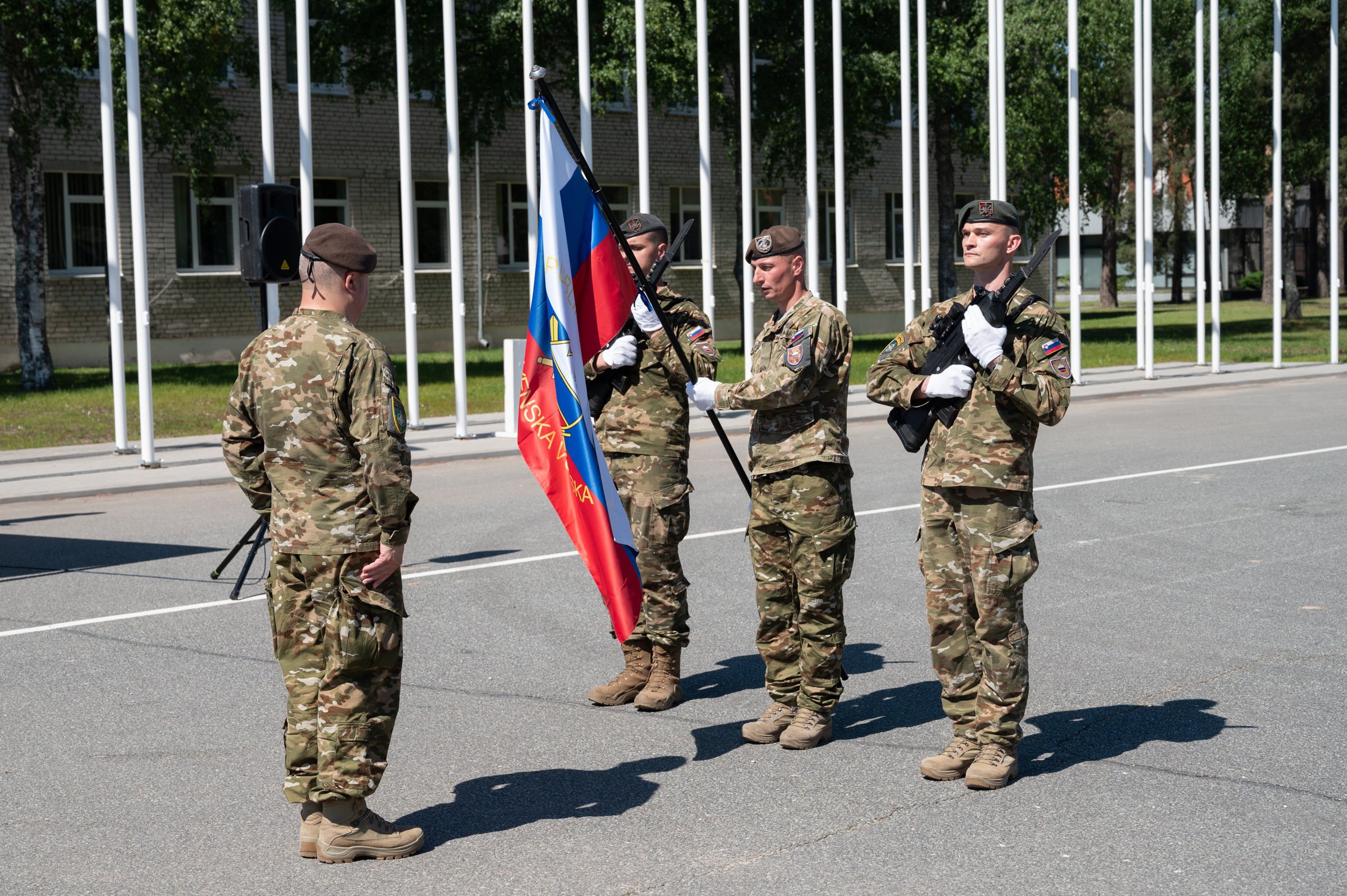 Republika Slovenija deluje v Latviji pod vodstvom Kanade kot vodilne države bataljonske bojne skupine in ob soudeležbi Albanije, Češke, Črne gore, Italije, Poljske, Slovaške in Španije. Napoteni pripadniki Slovenske vojske sodelujejo pri opravljanju mirnodobnih aktivnosti sil na misiji (vaje, usposabljanja, premiki za zaščito svojih sil, zagotavljanje in vzdrževanje celovite in okrepljene odvračalne ter obrambne drže Nata).