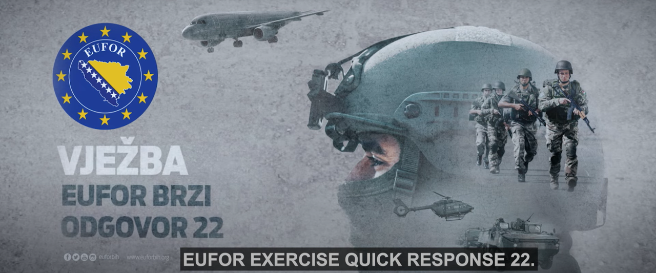 Na vaji Quick Response 22, ki v organizaciji sil Eufor v Bosni in Hercegovini poteka med 17. oktobrom in 20. novembrom, med udeleženci vojsk 20 držav sodelujejo tudi pripadnice in pripadniki Slovenske vojske. Vaja, prikaz zmogljivosti in odločenosti prispevati k varnemu in stabilnemu okolju za vse državljane BiH, bo vključevala povečanje sil na območju delovanja, intenzivnejše patruljiranje in taktične vaje na različnih lokacijah po državi. Sile Eufor bodo vajo izvajale v tesnem sodelovanju z vojsko BiH, lokalnimi skupnostmi in lokalnimi varnostnimi ustanovami. Vaja je odraz zavezanosti EU k zagotovitvi evropske prihodnosti državljanom BiH.