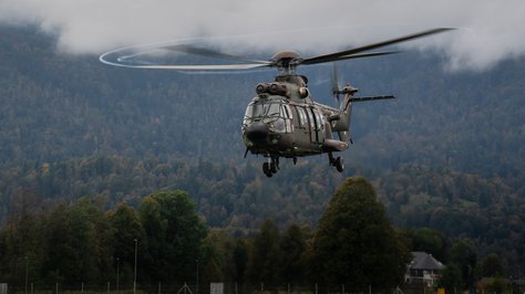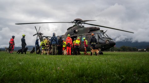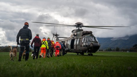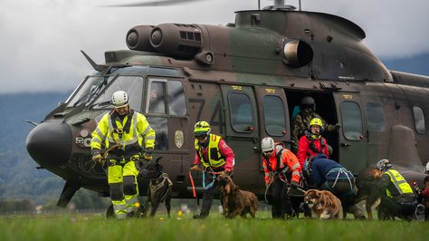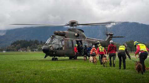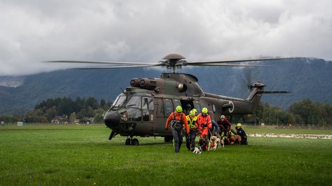 Helikopterska posadka Cougar AS AL 532 Slovenske vojske je v soboto, 12. oktobra, na letališču Lesce sodelovala pri usposabljanju vodnikov reševalnih psov, ki so urili postopke vkrcanja, izkrcanja in med poletom z vojaškimi helikopterji. Namen usposabljanja je bil, da se tako vodniki kot njihovi psi seznanijo z zahtevami in izzivi letalskega prevoza v reševalnih akcijah.