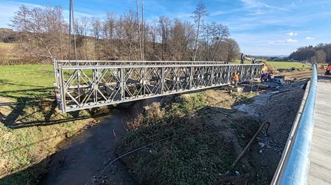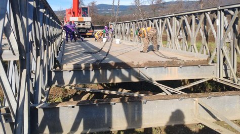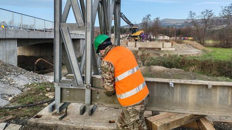 Inženirci Slovenske vojske v teh dneh sodelujejo pri razstavljanju montažnega mostu. Razstavljanje mostu Mabey & Johnson C-200 dolžine približno 25 metrov do četrtka, 28. novembra, ki je služil kot začasni obvoz med gradnjo mostu v Spodnji Ložnici, poteka skladno z zaprosilom Direkcije Republike Slovenije za infrastrukturo.