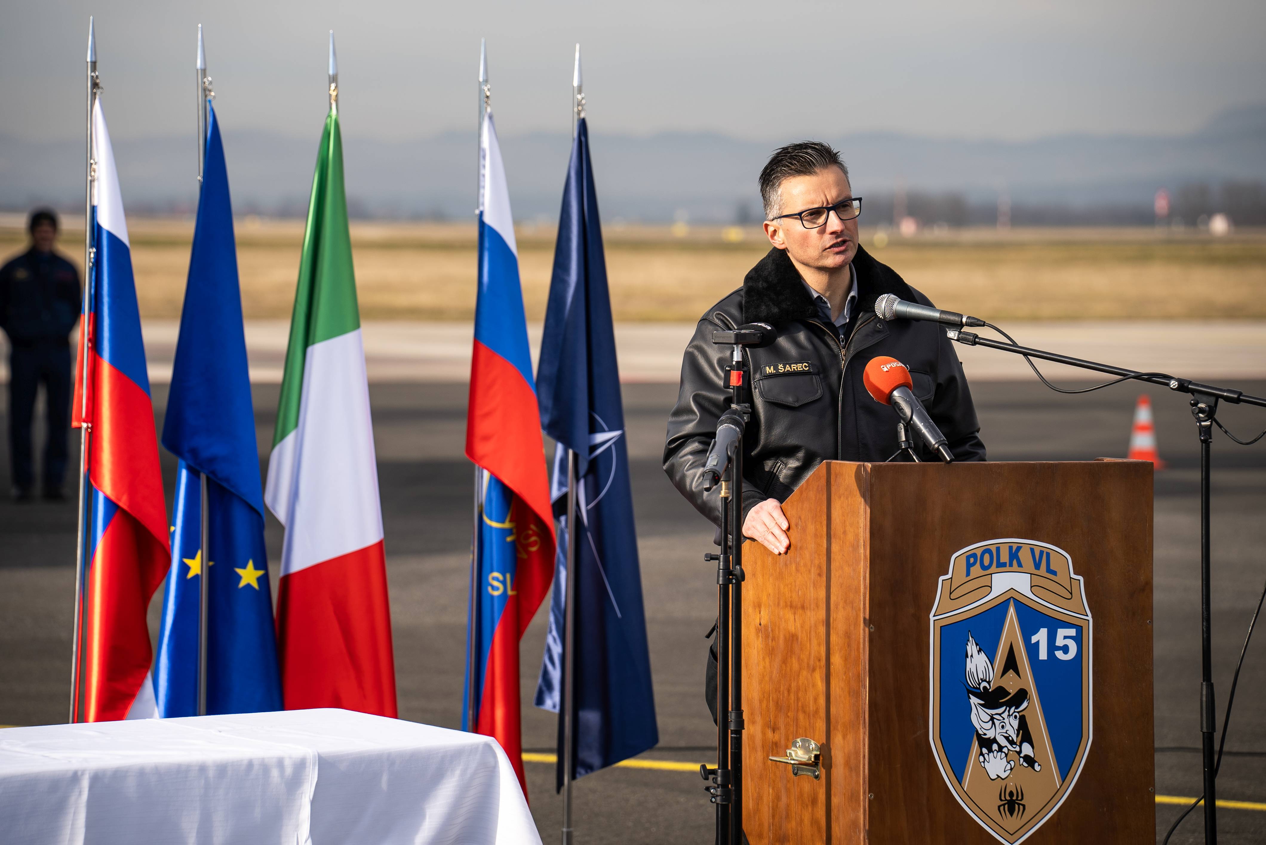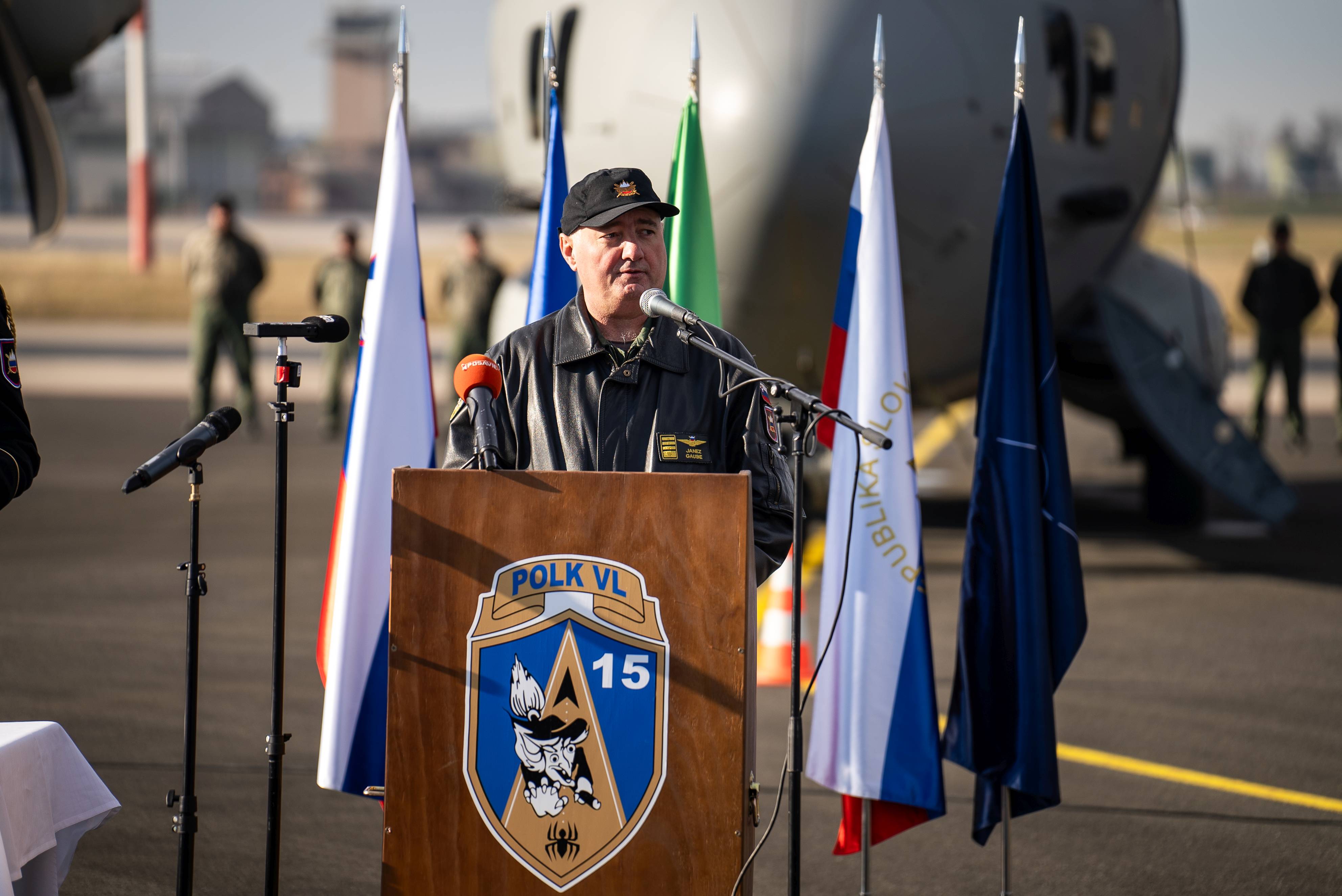 Poveljnik 15. polka vojaškega letalstva polkovnik Janez Gaube je v svojem govoru medtem pozdravil prihod letala Martin Krpan, obenem pa izpostavil tudi pomen vojaškega letalstva pri zagotavljanju letalskih operacij v podporo miru in v sistemu zaščite, reševanja in pomoči.