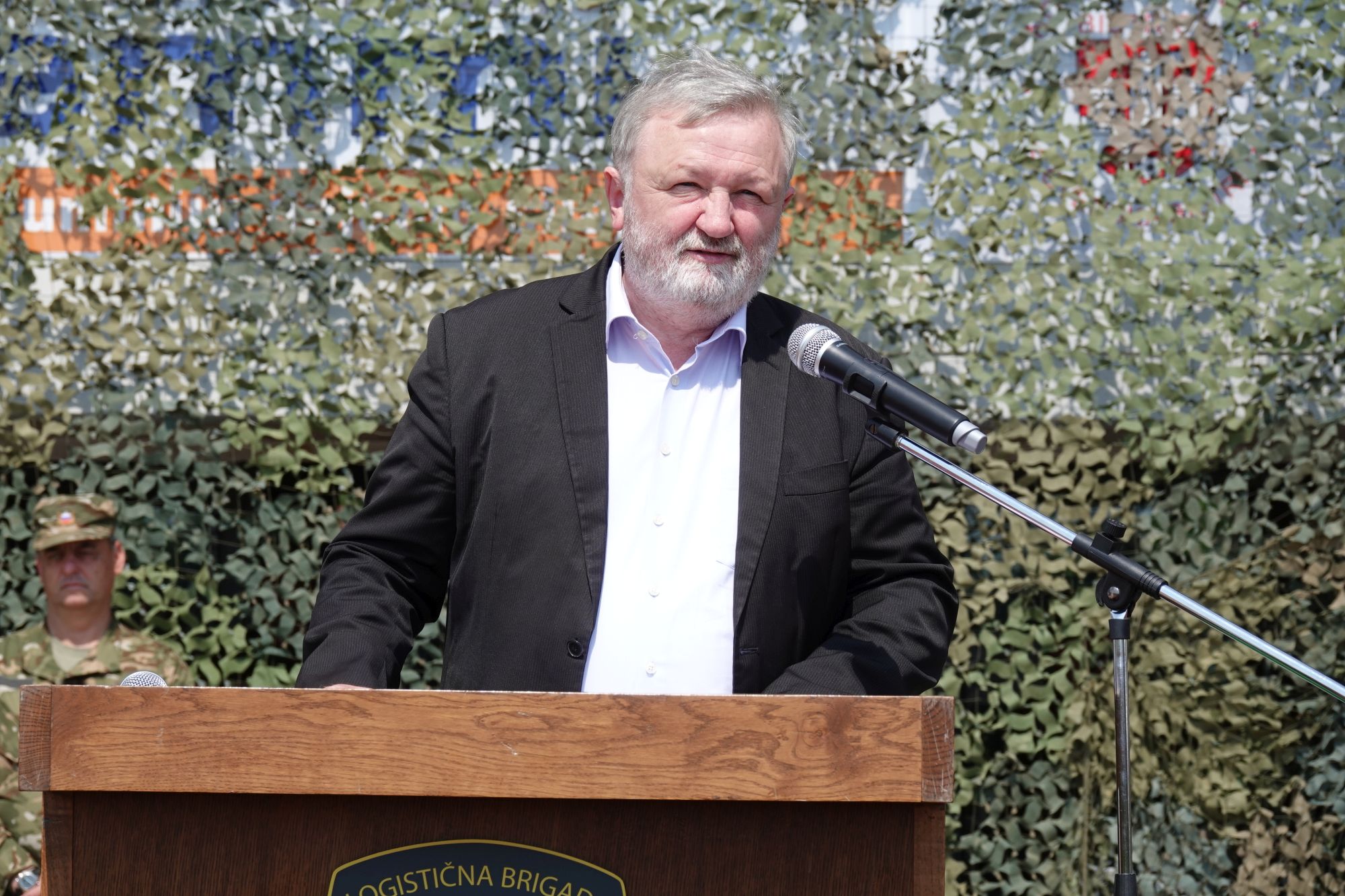 Slavnostni govornik je bil prvi poveljnik Logistične brigade g. Milan Obreza, brigadir v pokoju, ki je dejal ''da mi je v čast, da ste me povabili na obeležitev dneva Logistične brigade, dneva oklepno-mehaniziranih enot Slovenske vojske ter dneva državnosti. Počaščen sem, da vas lahko nagovorim kot upokojenec, kar ni običaj na tovrstnih dogodkih. Vedno se rad spomnim dne, ko sem leta 2006 prevzel poveljevanje v takratnem Poveljstvu za podporo, ki se je preoblikovalo v Logistično brigado. Vsak poveljnik, ki vam je poveljeval, je pustil nekakšen pečat in od vsakogar ste odnesli nekaj pozitivnega. Le čestitam vam lahko za odlično opravljeno delo na vaji Preskok 20 ter za vaš prispevek pri premagovanju pandemije. Spoštujmo drug drugega in imejmo radi Slovensko vojsko in Republiko Slovenijo,'' je dejal upokojeni brigadir Milan Obreza.