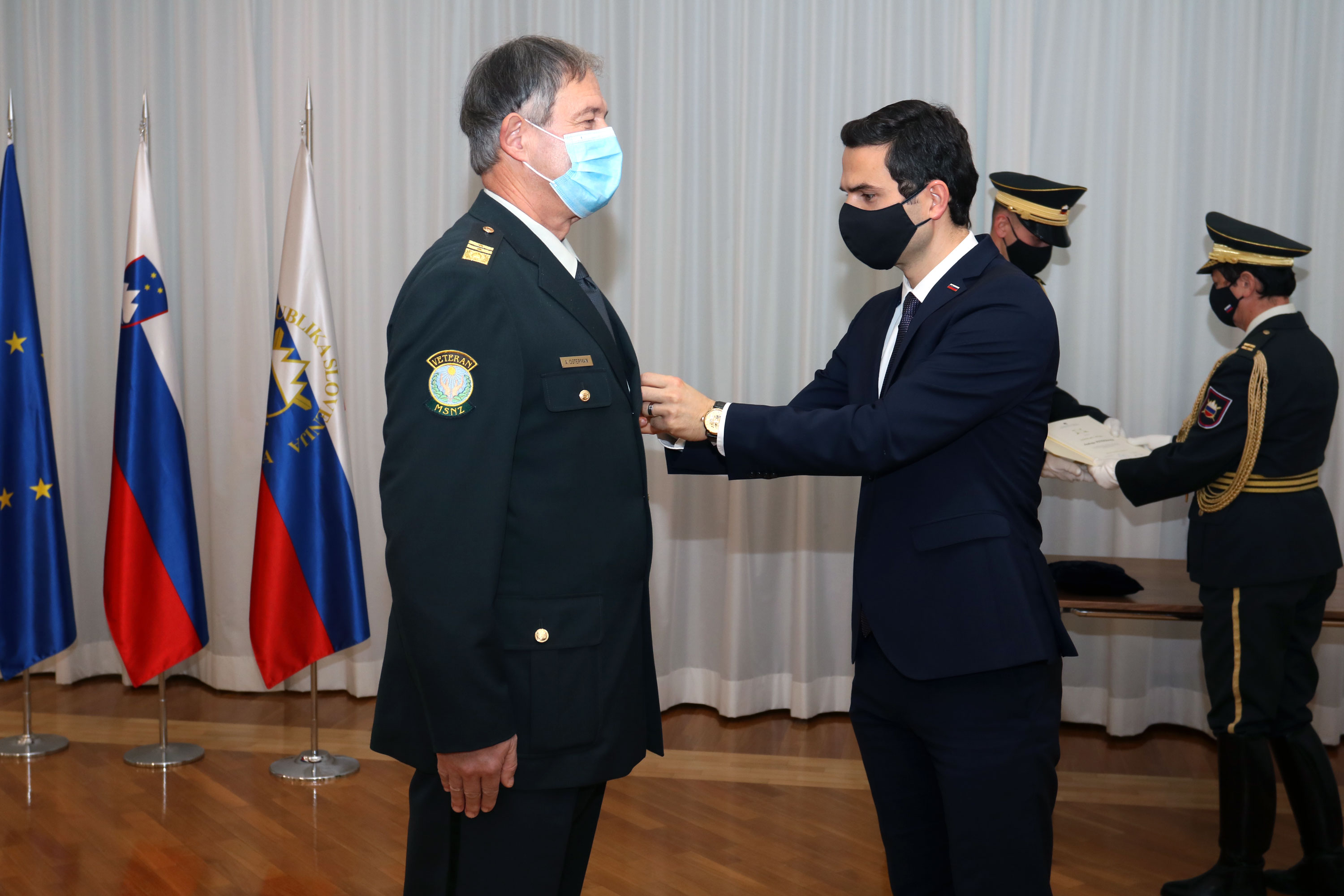 Načelnik Generalštaba Slovenske vojske brigadir Robert Glavaš je generalmajorju dr. Andreju Ostermanu izročil zastavo Slovenske vojske.