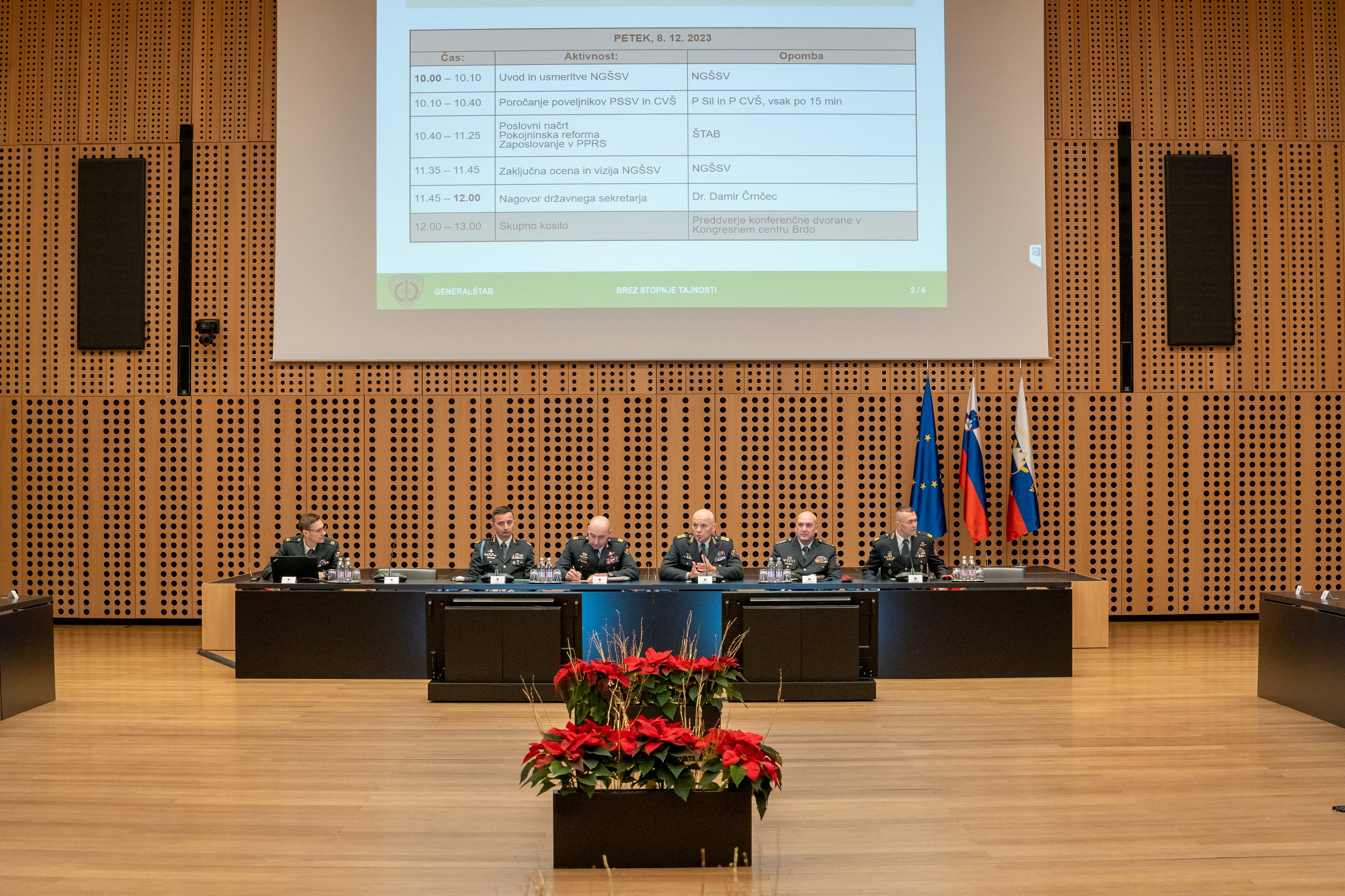 Generalpodpolkovnik Glavaš je spregovoril o prizadevanjih za napredek v Slovenski vojski, pri čemer je po njegovih besedah mogoče zaznati pozitivne trende na številnih ključnih področjih. Predstavniki Štaba Generalštaba pa so predstavili ključne naloge v prihajajočem letu, razvoj do leta 2026, finančni načrt ter izhodišča pokojninske reforme v naslednjih letih.