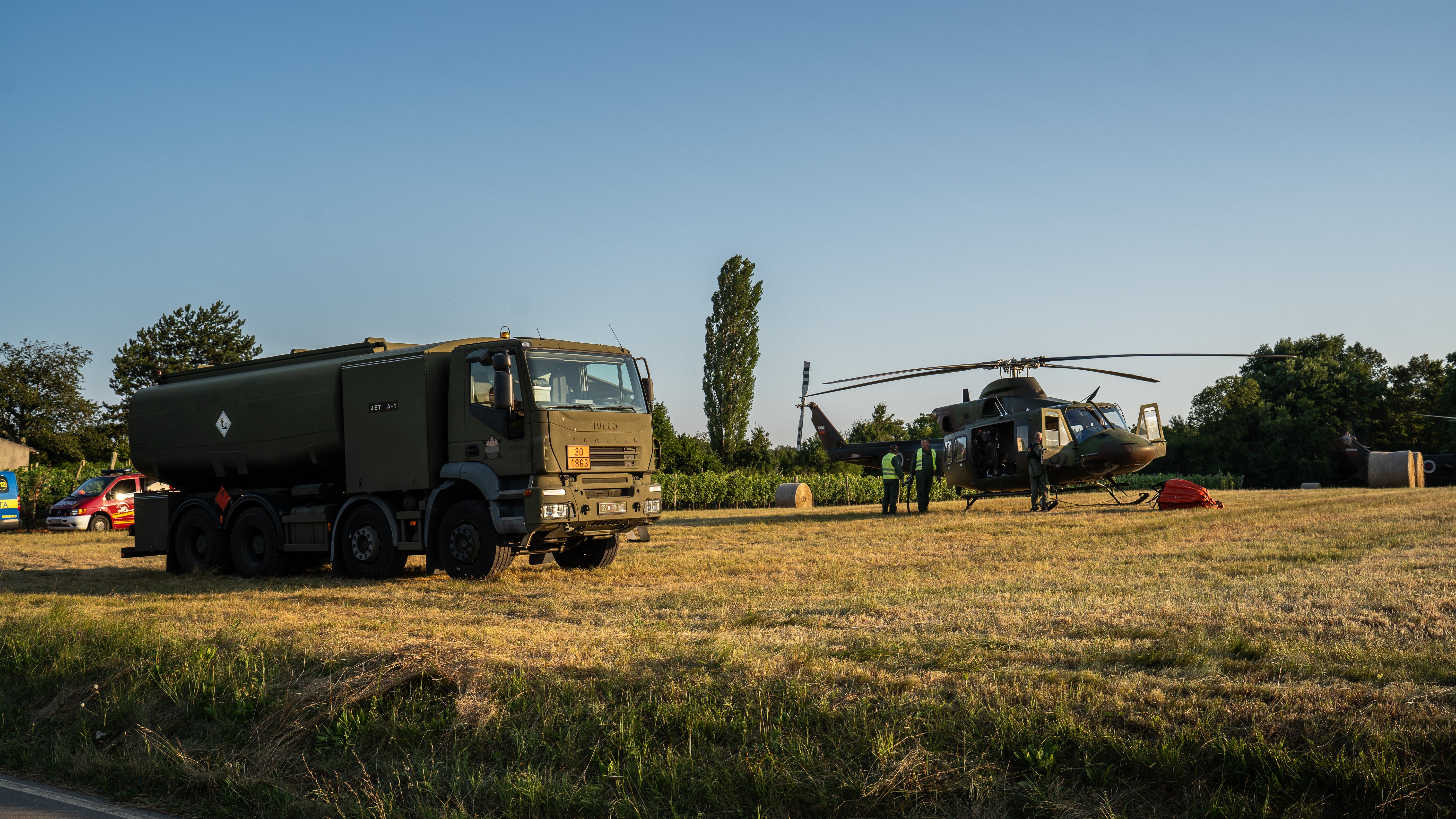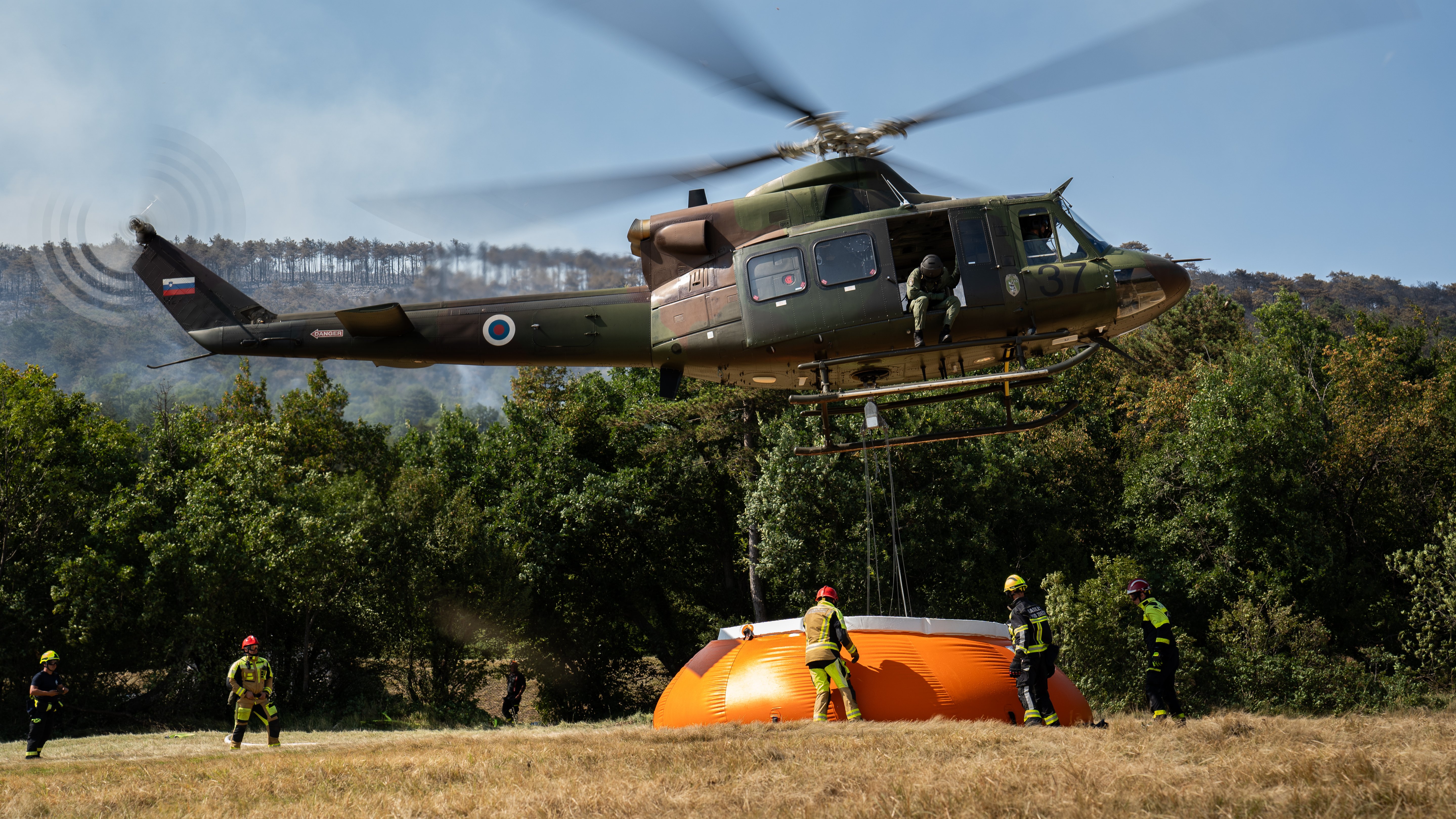 Helikopterski posadki Bell 412 in Cougar AS AL 532 sta sicer v četrtek, 18. julija, med gašenjem na območju Krasa na požarišče odvrgli 155.000 litrov vode in pri tem skupaj naleteli dobrih devet ur. Poleg tega je Slovenska vojska za gasilce zagotavljala hrano in vodo v Osnovni šoli Škrbina ter možnost namestitve v vipavski vojašnici.