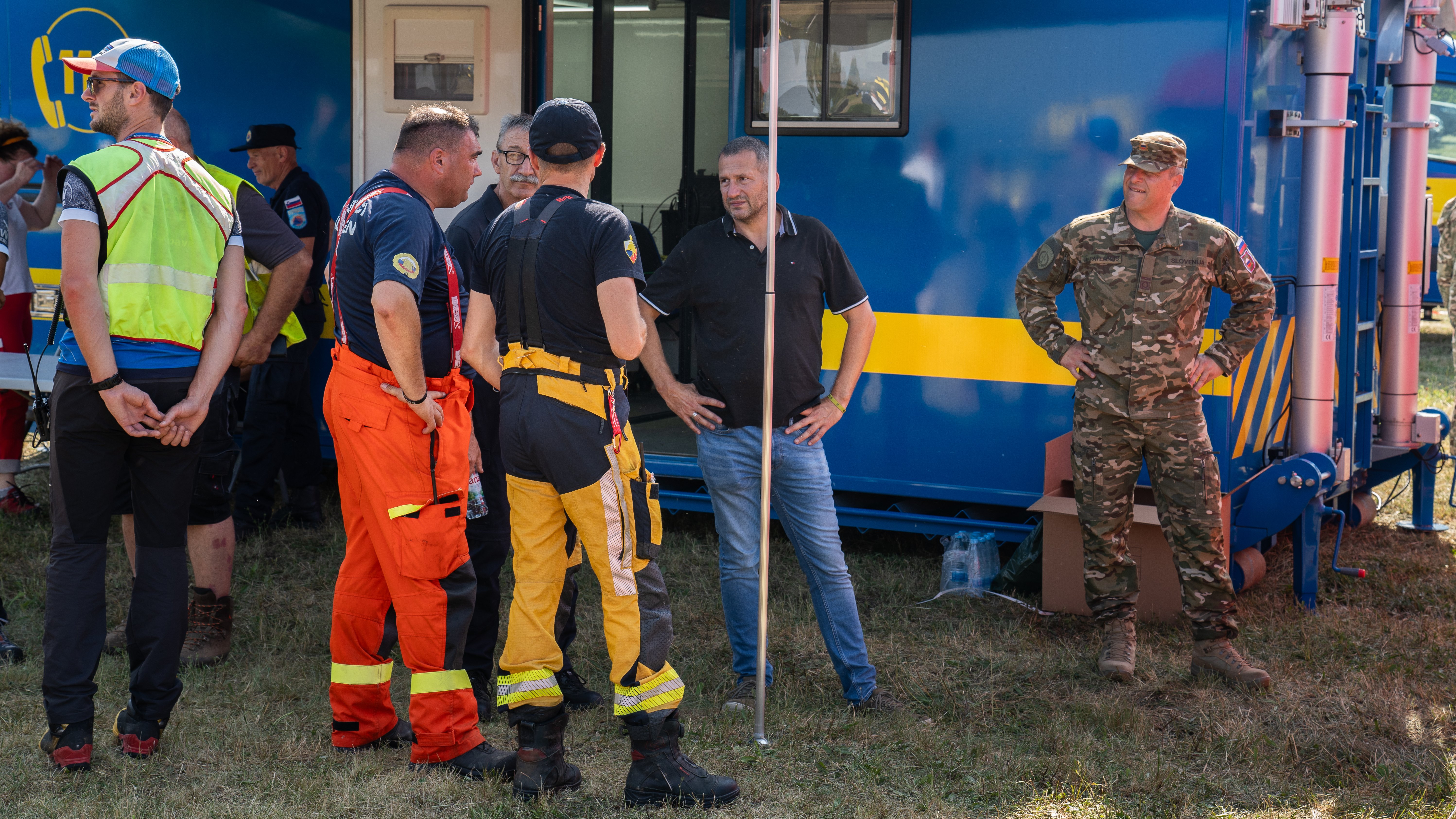 Stanje na terenu so si v četrtek, 18. julija, ogledali tudi državni sekretar na Ministrstvu za obrambo dr. Damir Črnčec, namestnik načelnika Generalštaba Slovenske vojske brigadir Uroš Paternus in poveljnik sil Slovenske vojske brigadir Boštjan Močnik.