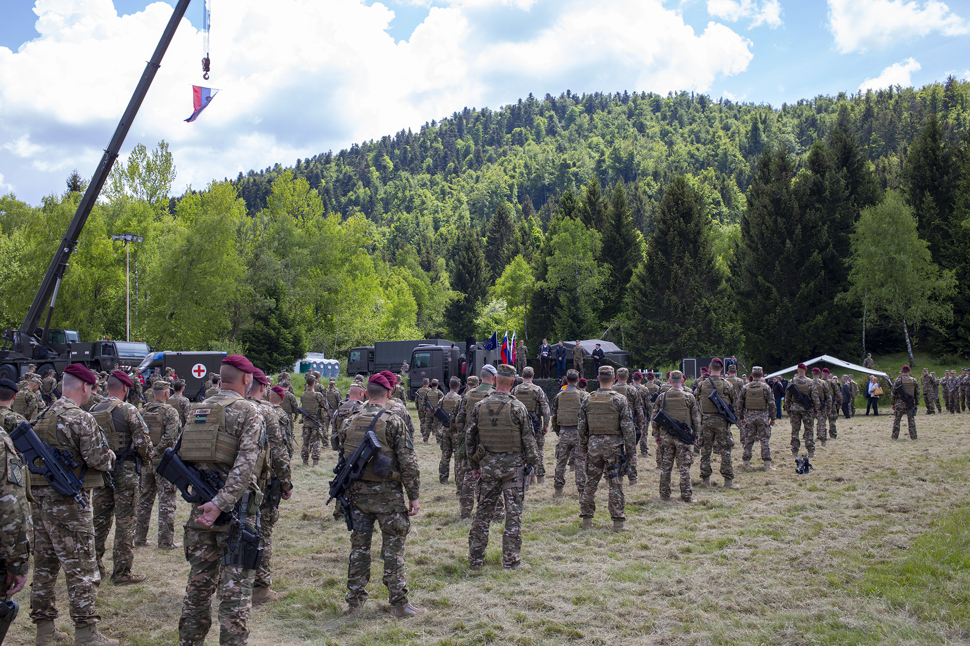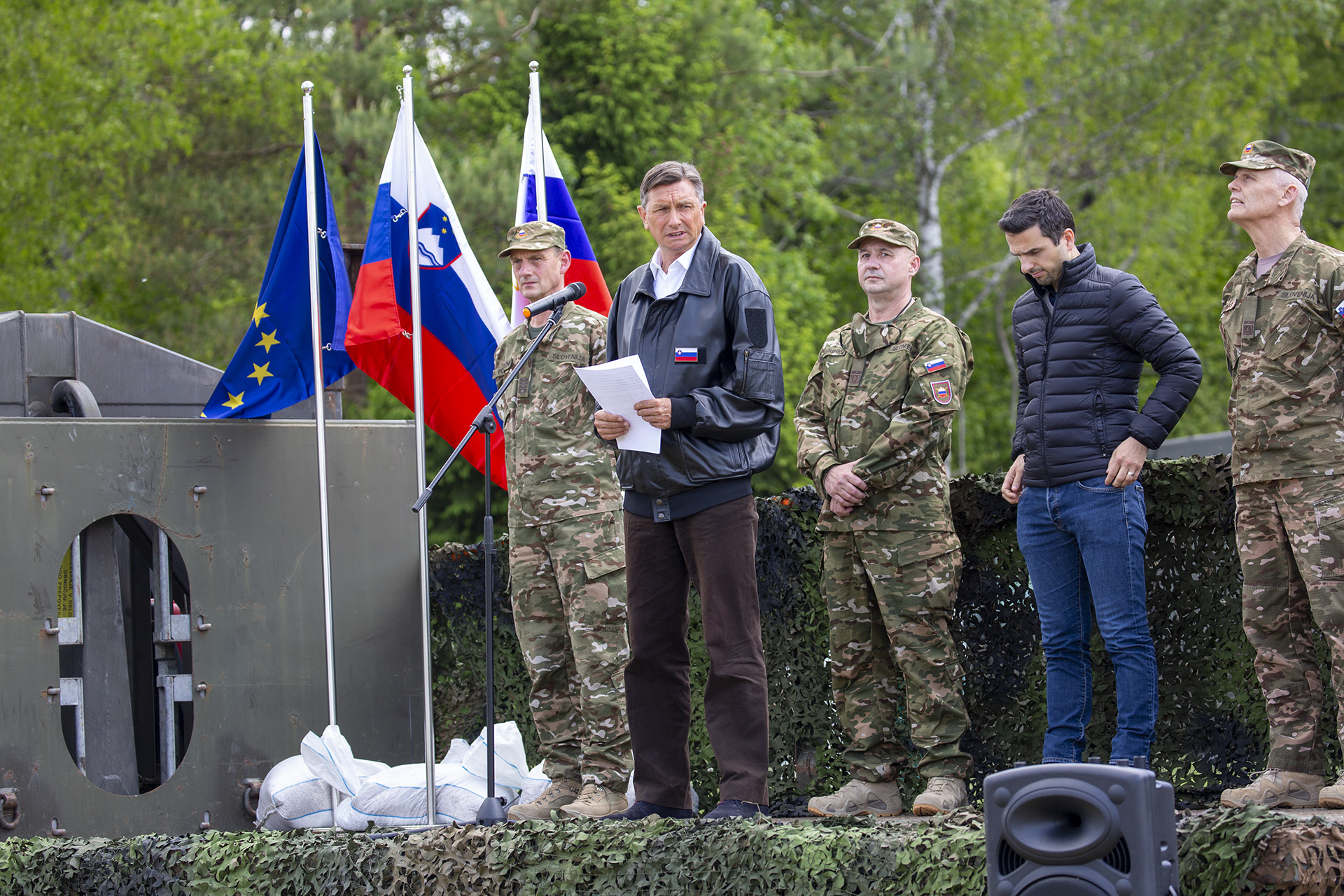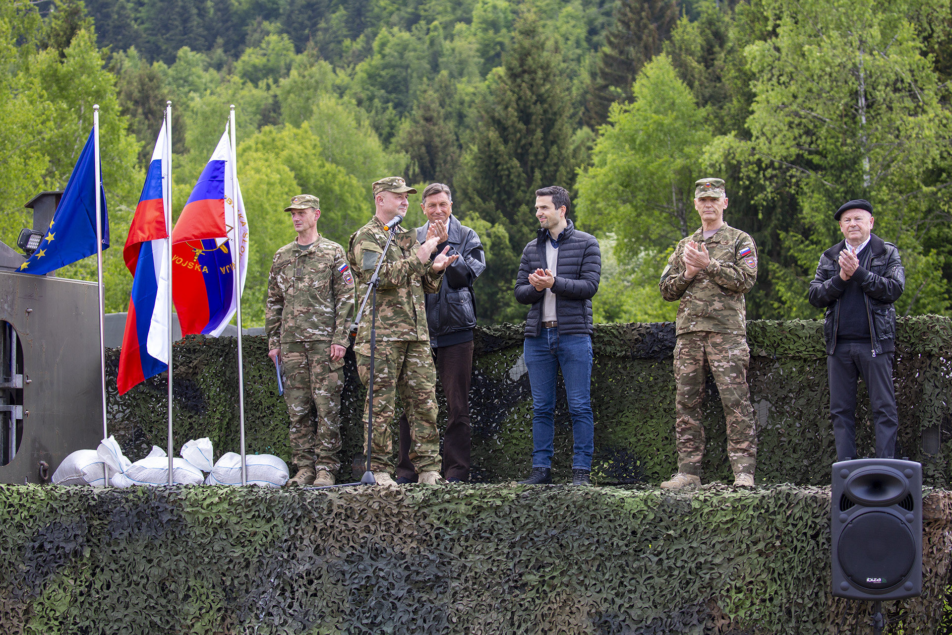 Predsednik države in vrhovni poveljnik obrambnih sil Borut Pahor je ob ogledu vaje nagovoril pripadnice in pripadnike Slovenske vojske (SV). Kot je dejal, so današnja vaja, že izvedene in še načrtovane vaje v sklopu vsesplošne največje letošnje vaje Preskok 2020 odziv na pričakovanja in zahteve za izboljšanje pripravljenosti naših oboroženih sil. Spomnil je, da je osnovna naloga SV krepitev bojnega karakterja vojske, ki se gradi predvsem z realnima usposabljanjem in preverjanjem usposobljenosti. »Usposobljenost je glavno merilo pripravljenosti kot ključnega elementa sposobnosti odzivanja na nevarnosti in tveganja v našem globalnem okolju,« je dejal vrhovni poveljnik in izrazil prepričanje, da bi SV, če bi bilo danes to potrebno, demonstrirala bojni karakter. Izpostavil je pomen usposabljanja in dodal, da ima Preskok sporočilno vrednost – »da smo z ramo ob rami pripravljeni varovati naše demokratične vrednote in svobodo. Vaše vaje sporočajo tudi državljanom v lokalnem okolju, da je SV pripravljena priskočiti na pomoč, ko je to potrebno.« Predsednik Pahor je poudaril, da je SV vselej v službi domovine ter da ima ime vaje lahko tudi simbolni pomen – preskok SV v obdobje razvoja in preoblikovanja v dobro opremljeno in usposobljeno slovensko vojsko. »Ob osebni zavzetosti ministra za obrambo in Vlade bomo v naslednjih letih z načrtom ministra in Vlade in upam ob podpori DZ zagotovili finančna sredstva, da bo vojska lahko pripravljena kot mora biti. In da bodo tudi ocene izkazale to, kar absolutno vemo – da se lahko na vas povsem zanesemo,« je še dejal predsednik Borut Pahor.
