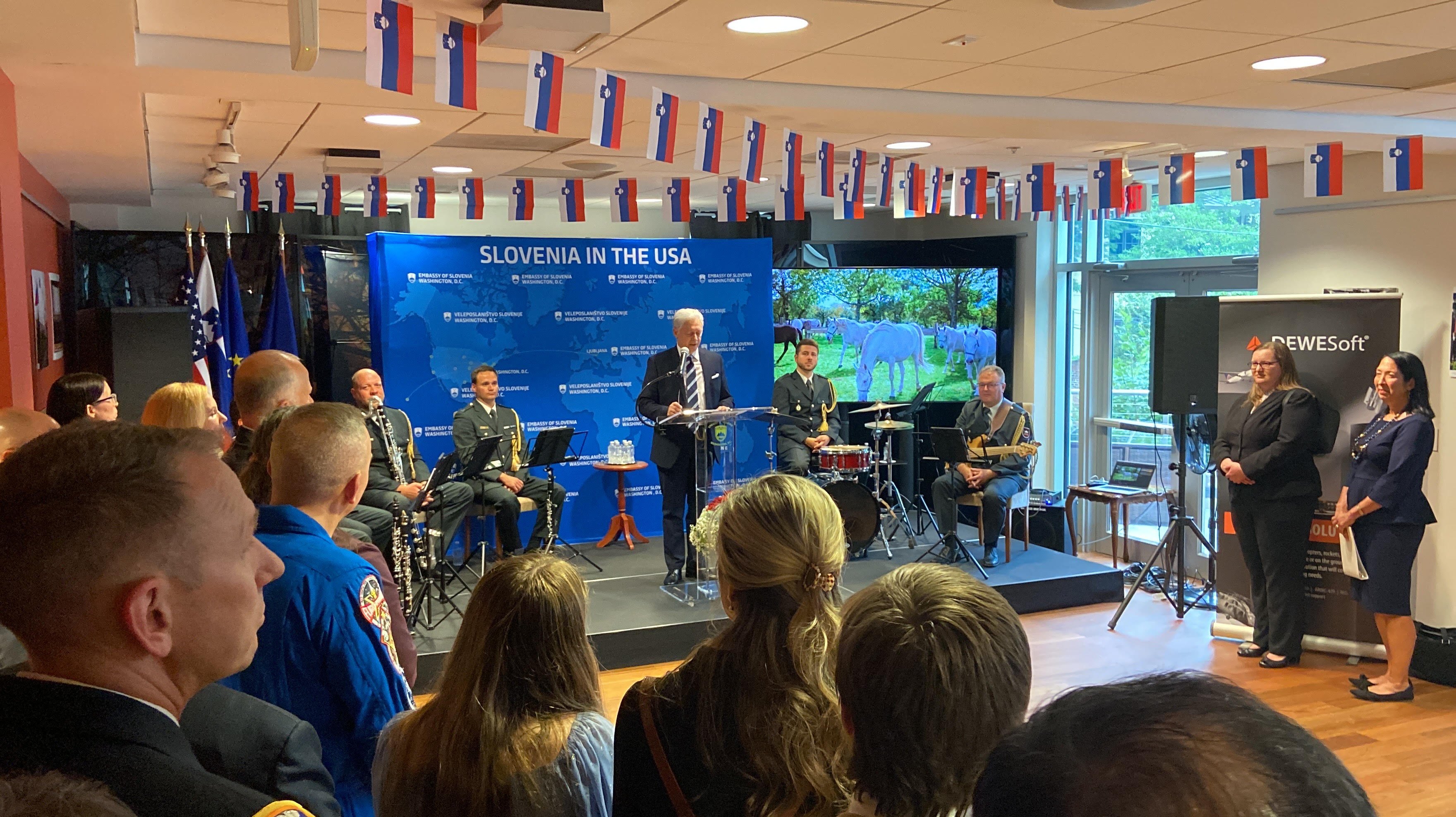 Na slovenskem veleposlaništvu v Washingtonu so slovesno obeležili dan Slovenske vojske in dan državnosti. Zbrane goste sta ob tej priložnosti nagovorila slovenski veleposlanik v ZDA Iztok Mirošič in obrambni ataše brigadir Klemen Medja.