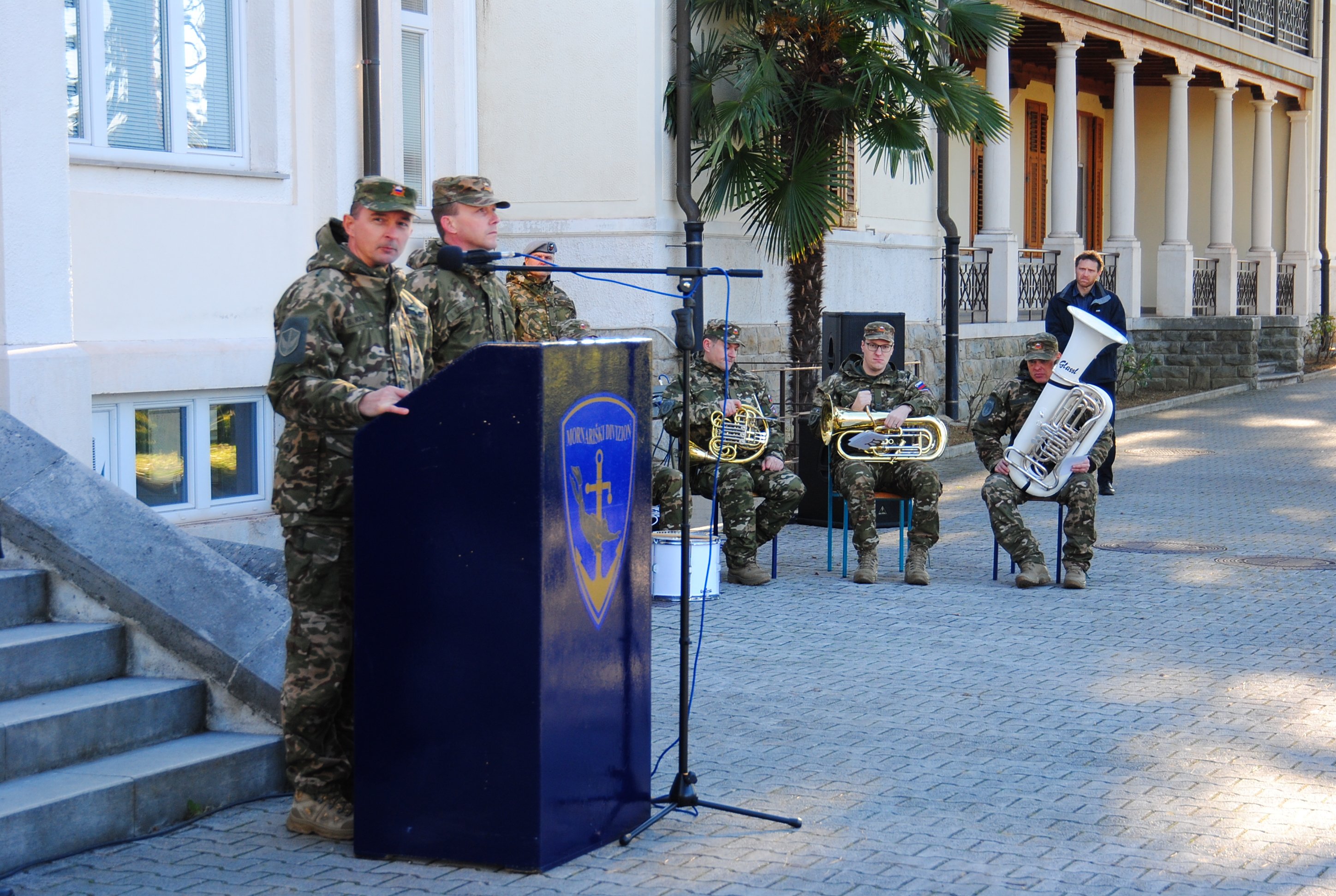 Slavnostni govornik na torkovi slovesnosti je bil poveljnik sil Slovenske vojske brigadir Boštjan Močnik, ki je v svojem nagovoru med drugim izpostavil pomen vojaške mornarice in spomnil na aktualne krizne razmere v Rdečem morju.