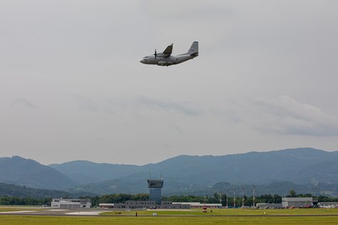 Taktično transportno letalo C-27J Spartan je v nedeljo, 23. junija, s potjo na Kosovo, kamor je poletelo z letališča v Cerkljah ob Krki, opravilo svoj prvi uradni polet.